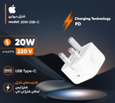 شارژر دیواری ۲۰ وات اپل مدل B/A – USB-C، شارژ سریع گوشی و تبلت